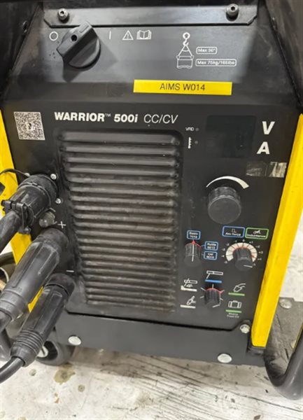 - The ESAB Warrior 500i is a rugged and high-performance multi-process welding system, designed for heavy-duty industrial applications. Delivering up to 500A at 60% duty cycle, this powerhouse is built to handle MIG/MAG, MMA, and TIG welding,